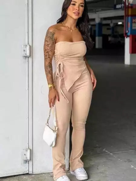 BLUSA CROPPED TOMARA QUE CAIA + CALÇA FLAIRE